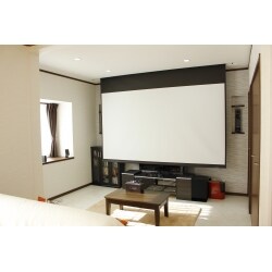 今回の工事の中でもメインとなるリビングの改装工事。和室が広々リビングに大変身しました。 お客様御支給のスクリーンとスピーカーを埋め込みで設置し、照明はダウンライトのみとしました。濃いブラウンの建材やカーテンは相性が良く素敵なお部屋に仕上がりました。 既存の間仕切りを外し床をフラットにしたので、ダイニングとつなげてゆったりとお使いいただけます。 押入れは細かく棚を設けた収納にしたので、散らかりがちな小物もすっきり収納できますね。