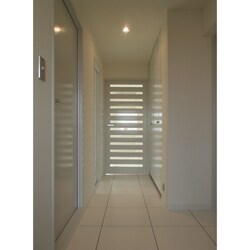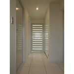 上質な白とミラー効果で叶える、明るくおしゃれなエントランス