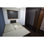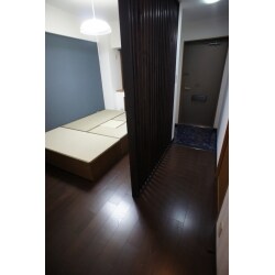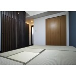 | その他採用機器・設備 | ・高床式ユニット畳「望」Ⅱ 80*160(引出付)へり付天然イ草表 畳ユニット炉檀加工 ※炉壇はお客様支給 ・ルーバー製作 ・クロス サンゲツ量産クロス ・フローリング EIDAI ダイレクトエクセル45HW(ディープウォールナット) |