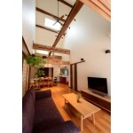 元々の間取りを一変させ、家族が集まるリビングは家の中心に設けて、見栄えのする梁をみせて、豪華さを演出。