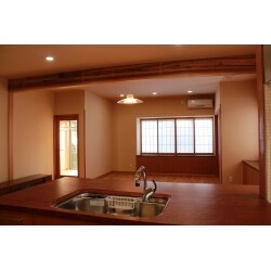 毎日のように娘さんやお孫さんが来られるということで、一人暮らしとはいえ、日中は大家族がくつろげるほどの空間が必要でした。そこでLDKはこれまでの間仕切りを取り払って、キッチンも対面式とし、大きな空間としました。座敷廻りは特に修理が必要な箇所はありませんでしたので、壁の塗り替えや襖の貼り替え、縁側床の貼り替え等を行い、リフレッシュしました。 床下地に県産杉を使用し、県の補助金を申請しました。また開口部をペアガラスにしたり、断熱も十分しなおし、エコキュートを設置することで、国の省エネ改修等推進事業の補助金も活用させていただきました。