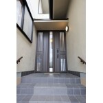 重厚感を出すために、タイルや木の門扉をセレクト。全体的に茶系で統一された、落ち着きのあるたたずまいになりました。