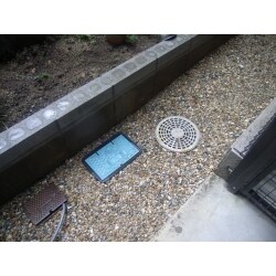 排水桝付近からの漏水が考えられたため、漏水部の補修と桝の リフトアップを基本として提案。併せて庭の美観を整える事を提案。