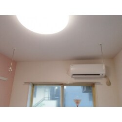 あったら便利な、天井取付タイプの室内用物干しを設置しました。防犯対策や雨天用として、室内物干しの需要が増えています。 使わないときは、竿を外しておけばじゃまにならないデザインです。