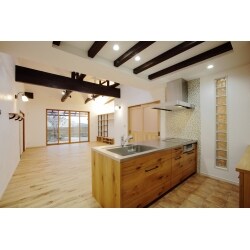「カフェのような暮らしに憧れて…」 そんなご家族の理想を叶える、こだわりのインテリアが完成しました! 一番の見どころは、もともとあった梁を活かした、解放感たっぷりのLDK。昔の趣も感じられる、ほっとする心地よい空間に大変身しました。