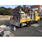 『えっ!そんな工事もできるの??』 とおどろかれる工事、堂々の第1位が駐車場の区画線や、車止め工事です。 店舗付き住宅や病院よりご依頼を頂いております。 いわゆる道路の白線なのですが、大きく分類すると ① 溶融式 道路にも使用されている白線 ② ペイント式 障害者用の駐車場の青いペンキ吹き付け部分 ③ 貼り付け式 福祉関係や自転車マーク等の焼き付けシート の3種です。 写真でご紹介しているのは黄色いトラックに積んだ溶融釜で 粉体樹脂塗料を溶かして塗布しているところです。 (年末の道路工事等でよく見かける車ですね。) 200℃の溶融釜で溶かしたドロドロ白線を 職人さんの経験と腕のみでまっすぐ引いていきます。 溶融式は高温で溶かした塗料を冷やして固めた塗料なので、 強度(耐久性)に優れています。 また、夜間でも白線が見えやすいように車のライトに反射する 「ガラスビーズ」を白線表面に振り落としていきます。