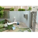 既存大谷石の塀の劣化が気になられていたお客様。外構をコンクリート打ちっぱなしで作り直し、浸透性の舗装材で仕上げました。また、庭木の抜根などもお任せいただき、手入れの楽な広々としたお庭の提案をさせていただきました。