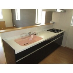 ダークな扉カラ―にシンクのピンクがとても合っていて、可愛くなりました