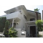 一色、明るく、本当の白亜の豪邸になりました。 駐車場の扉も綺麗に塗りました。 足場を組むので、屋根の工事も一緒に提案しました。