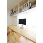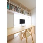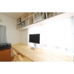 ・1階にある水廻りスペース(トイレ・お風呂・洗面)を2階に移設しました。 ・テーブルの上には、以前使っていた本棚を加工して、上に取付ました。手造りなので、サイズ自由自在です。 ・小上がりの和室は仕切れるようにして、引出式の収納も取り付けました。