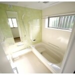 爽やかなライトグリーンがアクセントのバススペースです。壁の1面のデザインを変えることで、既存の浴室のイメージからガラリと印象が変わり華やかになりました。