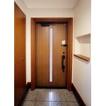 玄関ドアはYKKapのかんたんドアリモです。元々付いていたドアを生かしたカバー工法になっています。