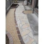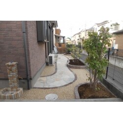 乱形天然石とレンガブロックなどを組み合わせて、お手入れしやすく、お洒落なエクステリアを実現しました。
