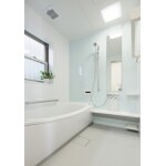 浴室は壁紙の一部に水色をお選びいただき、アクセントとした空間に仕上げることが出来ました。 浴槽はゆったりとしたバス空間を過ごしていただける、広々とした商品をご提案させていただきました。