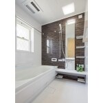 ライトグレーのアクセントパネルで落ち着いたシステムバスに