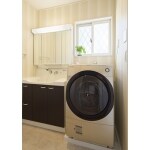 洗面室は内装の張替はもちろん、洗面台と洗濯機置き場の2つがスペースに収まるようにご提案させていただきました。