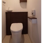 キッチン、浴室と同色で統一。 表に物のないすっきり、清潔感のあるキャビネット一体型 トイレをお勧め。 掃除も楽になりました。