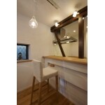 キッチンは限られた横幅の中でも使いやすく良いものをと、当社注文住宅のオリジナルキッチンをご提案させていただきました。 ウォークインパントリーとして豊富な収納スペースを設けることで、コンパクトなキッチンをスッキリと使うことができます。 ダイニング側には、お気に入りの小物や雑誌を置けるディスプレイカウンターをつくりました。
