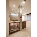 今までは閉鎖的な独立型キッチンでしたが、ご家族と会話しながらお料理できる【開放的なオープンキッチン】に生まれ変わりました。また、カウンタースツールを2脚置いて、簡単なお食事や、時にはご夫婦でお酒を楽しむことが出来る場所が出来上がりました。ここは収納にしてしまいがちなスペースですが、このような中間的なスペースを造る事で、生活を豊かに彩ってくれます。