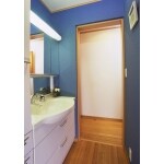 浴室を移動することで水廻りの導線を整理して、洗面室をリフォーム。 設備の入れ替えとともに、クロスはブルーをお選びいただきアクセントになるようご提案させていただきました。