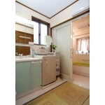 以前は仕切られたスペースにあった洗面室。 浴室へ続くスペースに洗面室をつくり、新しい洗面台に入れ替えて、導線も良くなりました。 洗濯機も同じ場所に設置することで、水廻りの機能をまとめることも出来ました。