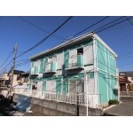 オーナーさんの好きなグリーンのパステルカラーで外壁を塗り、他の部分は白で仕上げ清潔感のあるおしゃれなアパートによみがえりました!