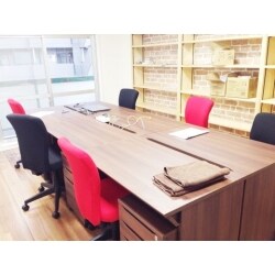 事務所へ生まれ変わりました。窓をつぶして棚も造作しました。