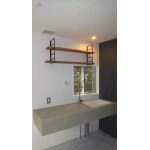 普通のシステムキッチンを取り付けるのではなく、モルタルで造作しました。 シンクと水栓しか付いていないシンプルなキッチンの出来上がりです。 1Rのアパートなので住む人が必ず料理をするわけではないだろう。 ガスコンロを置けば料理も出来るキッチンになる。という考えのもと作られたキッチンです。 オープンなキッチンなので家具の一つとしても利用できるほどシンプルです。