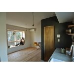 床を無垢材をつかい、温かみのある部屋へ。 天井や壁面も白い塗り壁で仕上げました。