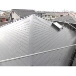 施工後です。 高圧洗浄機に特殊ノズルを装着し、念入りに洗浄してから、3回塗りで仕上げました。 棟板金の釘は点検、増し打ちをしてあります。 また、板金の合わせ部分はシーリングを打ち直ししてあります。