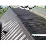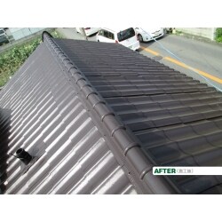 表面の塗装めくれ・屋根材の割れが多数ある状態でした。割れている箇所は変成シリコン剤で補修、表面のケレン洗浄を行い、オリエンタル塗料を下塗りを含め、計3回塗りいたしました。