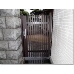 裏口側はタカショーのフェンスの延長上にあるので同じタカショーの門扉を採用。 玄関側はタイルや既存の門扉とのバランスを考慮しLIXILのプログコート門扉を提案しました。