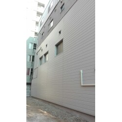隣接した建物の取り壊しにより、隣家の屋根や壁の跡が残り、見た目だけでなく耐久性にも不安がありましたので、外壁の下地・防水処理をした上で、断熱・耐震性に優れた金属製のサイディングを貼りました。