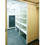 玄関近くにある納戸は広々していましたが、棚などが足りなく、十分に活用されていませんでした。 今回オーダーで可動棚やハンガーパイプを設置。靴もたっぷり収納し、季節の設備機器やコート類を十分に収納できるスペースとなりました。