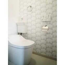 Panasonic アラウーノS2 リフォームタイプにお取替えしました。 水アカ汚れをしっかりはじき、キズやひび割れにも強い有機ガラス系新素材の便器です。 トリプル汚れガードが「トビハネヨゴレ」を防ぎます。 内装クロスも遊び心をだしてステキなアクセントクロスを選定して頂き、ステキな仕上げになりました。