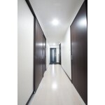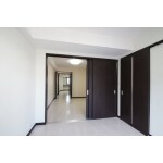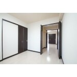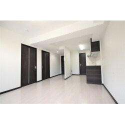 白とダークブラウンを基調としたモダンな雰囲気。 広いLDK、広い廊下、広いお風呂。