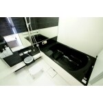 1620サイズでゆったりと。ブラック&ホワイトがかっこいいバスルームです。