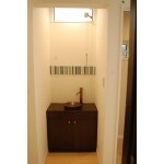 お手洗いの手洗いをご希望でしたので 廊下に備えつけさせていただきました。 外から帰ってきた際の手洗いにも使えるようご提案させていただきました。 また、シンプルに仕上げたいとの事でしたので 鏡はなくし、代わりに洗面台のお色目とマッチする タイルをアクセントとして 使用させていただきました。