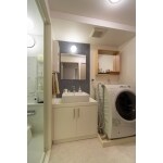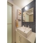 収納にこだわり、すっきりとした北欧テイストの洗面室