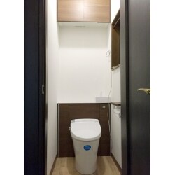 | その他採用機器・設備 | トイレ便器 「リフォレ」I型 H1グレード リモコン標準 手洗付 750-800mm※右扉特注対応 棚付2連紙巻器:CF-AA64 タオルリング:KF-91A アッパーキャビネット:TSF-415/LP エコカラット スプライン サンゲツSP(量産クロス)同等品 |