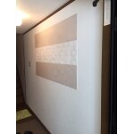 トイレ室内の機器の入替とクロスとクッションフロアーの貼替、吊り戸取付を行った後に、トイレと玄関の壁面にエコカラット取付の工事を行いました。