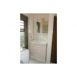洗面化粧台スペースの傍に勝手口があることから、やむを得ず奥行の少ない商品を選定していたI様。せっかくのリフォームですから、収納力が格段に良い「オフト」にしましょう!ということでオフトを提案し、ご採用いただきました。 脱衣室リフォームも兼ねましたので、天井・壁・床・洗濯機パン・洗濯機水栓金具を、一式交換させていただきました。 洗濯機の上のスペースを利用し、洗剤などを置ける棚も設置。水廻りがキレイになると気持ち良いですね。