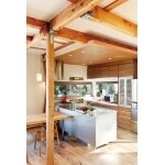 壁や天井をなくして、構造材はすべて洗いをかけて、蜜蝋ワックスで仕上げて使用。木と鉄が醸し出すダイナミックな力強さとオーク無垢フローリングが創る、ぬくもりある空間に。 折り下げ天井に間接照明をつけて見事にマッチングさせた