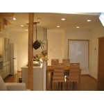 間仕切りを減らして広いLDに 階段上部を天窓にして、日差したっぷりのリビングに 薄暗かった店舗部分を和モダンスタイルの広々としたバリアフリー玄関に ふみ板を広めにつくりゆるやかな階段に