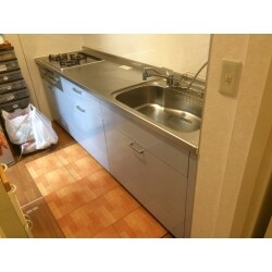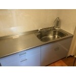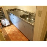 システムキッチンを交換するにあたり、クロスを張替、床は掃除のしやすいクッションフロアで貼替えを致しました。
