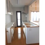 古いキッチンを交換し、その際に吊戸を無しにしてオープンキッチンとし、背面に造り付けのカップボードを設置致しました。 キッチンは奥行き65㎝のものが主流になっていますが、カップボードとの間隔が狭くなってしまう、勝手口に干渉してしまう等の問題があり奥行き60㎝のキッチンをご提案させて頂きました。動線が良く使いやすいレイアウトになったかと思います。