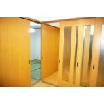 ・廊下との段差をなくしました。 ・廊下とカーテンで仕切っていたので新たに折り戸を 取り付けました。 ・戸を開けた時、ふつうのドアーだと廊下を遮ってしまうので 少しでも邪魔にならない折り戸タイプの戸をご提案しました。