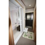 ・空き部屋を利用して、浴室と脱衣室を新設。 ・入浴時に居間から見守ることができるように浴室を配置。 ・入浴時の衣服の着脱をエアコンがある居間と寝室でゆっくりできるように計画。 ・洗面とトイレを1つの空間にすることで、車いすの動線を安全かつシンプルに。 ・洗面を通ってトイレにアプローチすることで、プライバシーを確保。 ・車いすの動線は全て引き戸にし、移動しやすいように。 ・玄関からの外出は外部に段差があり隣接建物との間が狭いので、出入口を変更。 ・脱衣場の窓を店舗用引戸に取替えて出入口に。屋外に電動昇降機を計画。