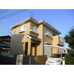 外壁塗装ご希望でしたので、まず外壁、屋根の調査を行いました。調査後、気になる点がありましたので、以下の事項を提案致しました。 ・クラックがいくつかあったのでクラックの補修 ・日当たりが多い面でシーリングが切れていたのでシーリングの一部打ち替え ・バルコニーに水が回っていたので、防水処理 その後、暖色系の外壁色を選ぶため、色見本で色系統を選び、小さな見本ではイメージがつかみにくいと思い、実際に塗装した物件をお客様と見に行きました!