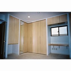 L型クローゼットは、角のデッドスペースをなくすために柱を立てないアイディアが大変素晴らしかったです。大工さんの腕のよさはもちろん、担当の方のマナーもよく、留守宅で連絡が取りにくいにも関わらず細かく対応してくださいました。